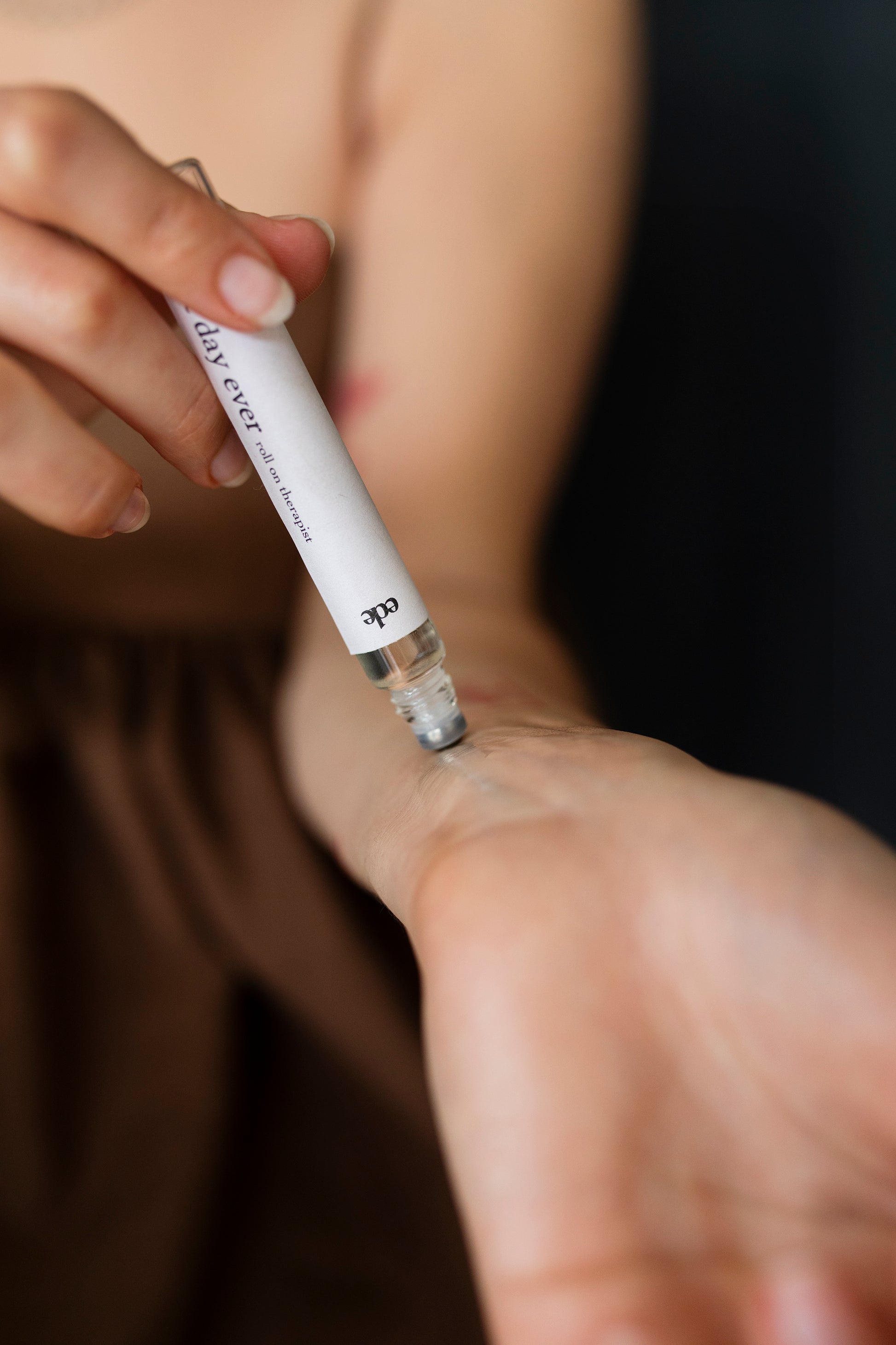 手首の内側、こめかみ、その他のパルスポイント(脈拍がとれる場所)に転がして、香りを深く吸い込む。
